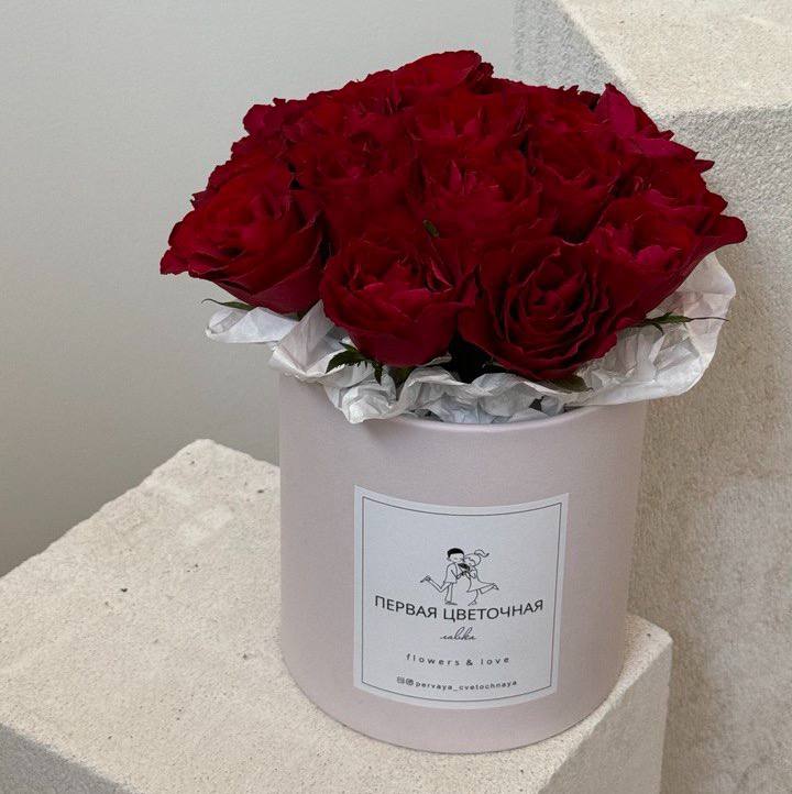 Красные розы в шляпной коробке